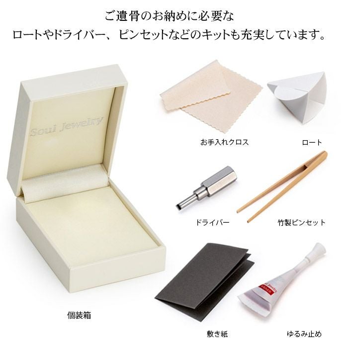 個装箱、納骨キット、専用ドライバー、竹製ピンセット、敷き紙、紙製ロート、お手入れクロス、取扱説明書、ねじゆるみ止め固着剤