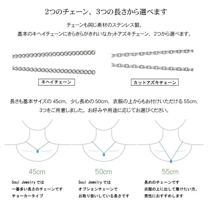 チェーンは2種類、3つの長さから選べ、刻印代もお品物代に含まれています。