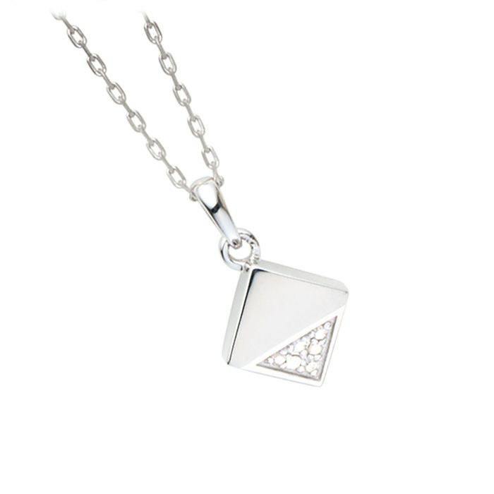 シンプルなデザインが魅力。カット面に6石のダイヤをちりばめています。