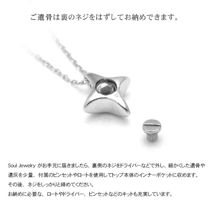 人である以上いつかは避けられないこの別れに際して、 インナーポケット機能がついた”Soul Jewelry”は、最愛の方の形見や遺灰を収納していただくことができるジュエリーペンダントです。
