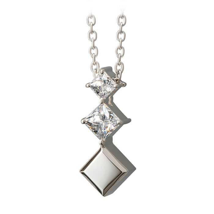スクエア型。高いカット技術により、石の中にクロスの光が浮かび上がる。