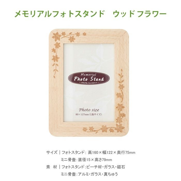 メモリアルフォトスタンド ウッド フラワー ミニ骨壷